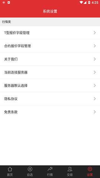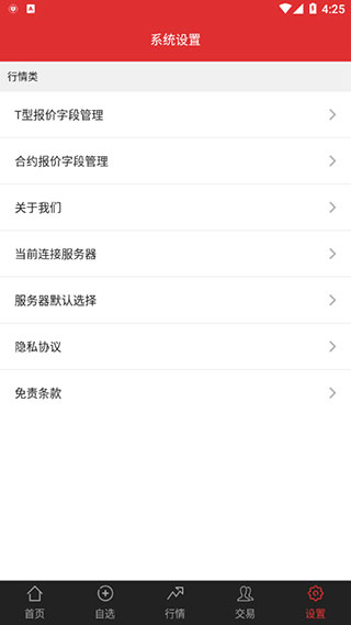 5、进入“设置”页面,可对T型报价字段管理以及合约报价字段管理进行个性化配置。