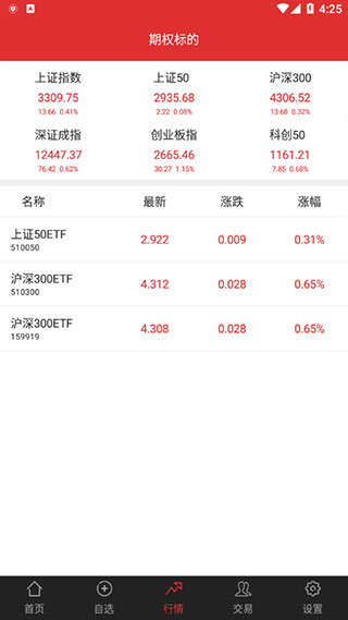 4、点击“行情”栏目,可查看上证指数等主要市场指数的实时行情。