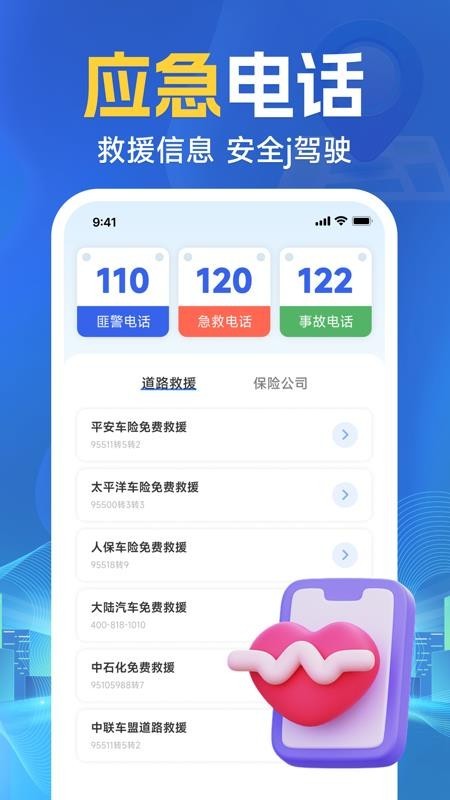 4、应急电话:整合110、120、122等应急电话,以及多家车险、道路救援电话,为出行安全保驾护航。