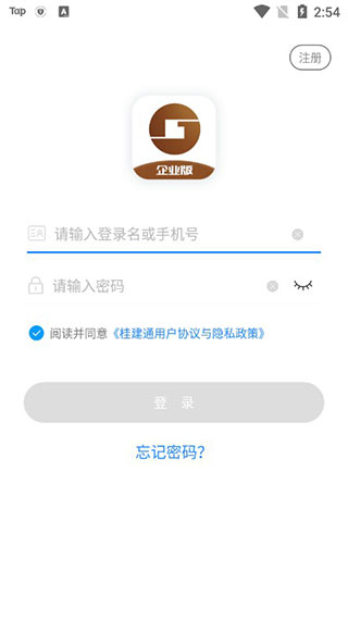 在本站下载并安装好桂建通企业版软件后,打开应用,输入已注册的手机号及密码完成登录。