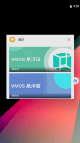 6、挑选多个任务莱单,会弹出来VMOS悬浮球和VMOS悬浮球;