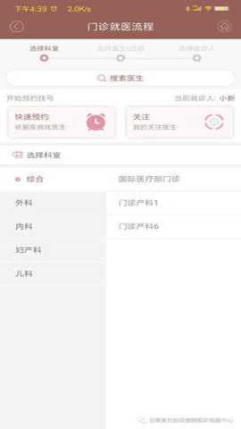 1、 进入【首页】,点击【挂号】,选择科室-门诊;