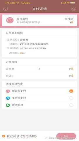 6、 选择支付方式/在规定时间内支付,否则预约取消;