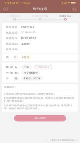 5、 确定预约/也可以切换就诊人;