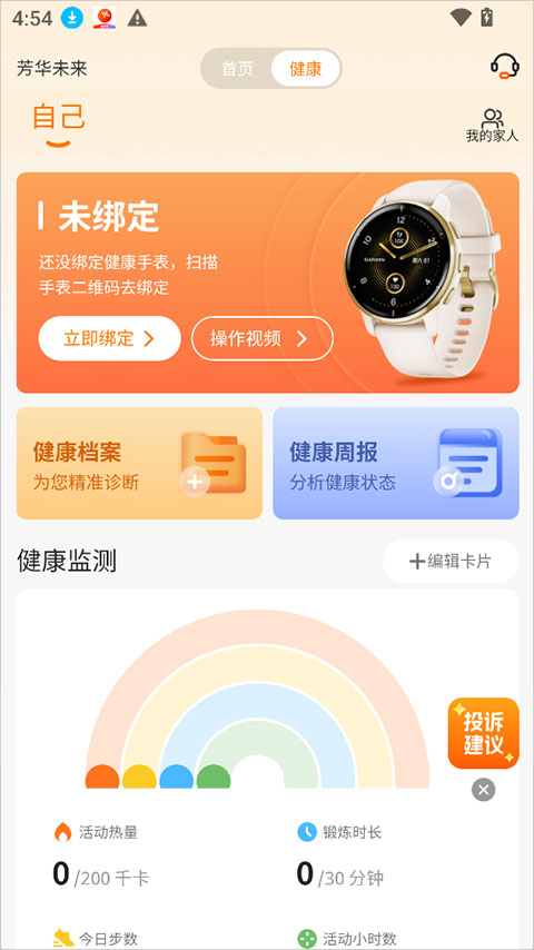 3、在应用程序的“健康”界面中,您还可以配对并佩戴兼容的智能手表或手环设备,实时监测心率、睡眠等健康数据。