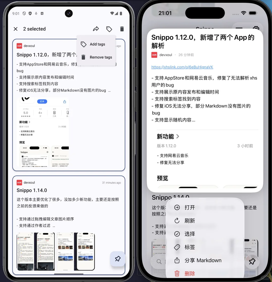 Snippo 是一款简洁的收藏工具,帮助你快速保存灵感内容。无论你正在浏览社交平台,还是看到某个打动你的片段,只需通过系统的分享菜单,一键收藏,不错过任何灵感瞬间。