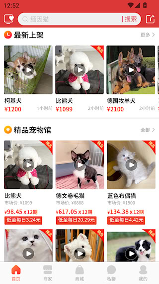3、找到心仪的宠物,点击进入,可以在线预约看宠、购买等