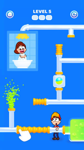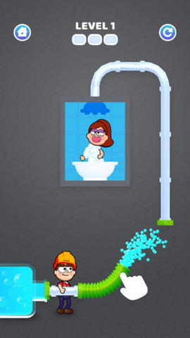 浴室水管工游戏是一款非常热门的休闲益智游戏,玩家们在这里将会化身为一名水管维修工人,你要做的就是去不同的关卡中将漏水的管道修好,让主角能够成功洗澡,游戏有很多趣味的关卡可以挑战,每一道关卡都非常考验玩家的脑洞。
