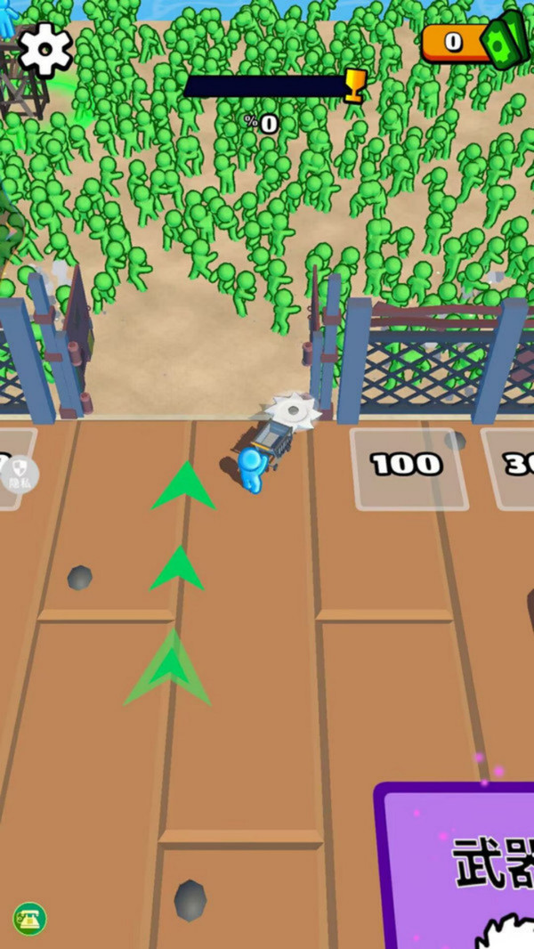 驾驶战车在尸群中横冲直撞,配合刀片飞旋、机枪扫射等特效,带来类似“割草”的密集反馈,极具视觉冲击与情绪释放感。