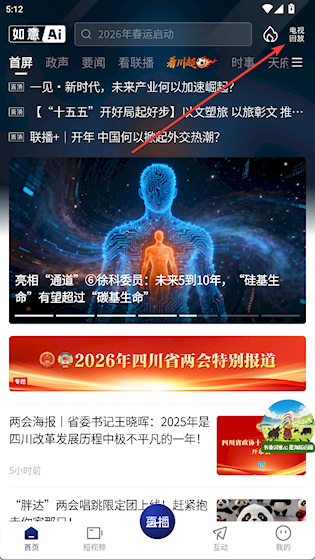 1、在首页点击右上角电视回放