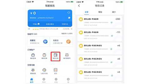 在首页界面上找到并点击“钱包记录”选项。