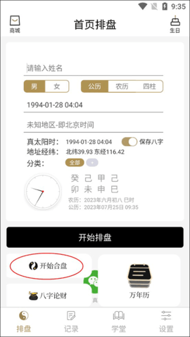 3、进入软件后,默认进入排盘页面,您可以在该页面输入个人信息启动排盘。