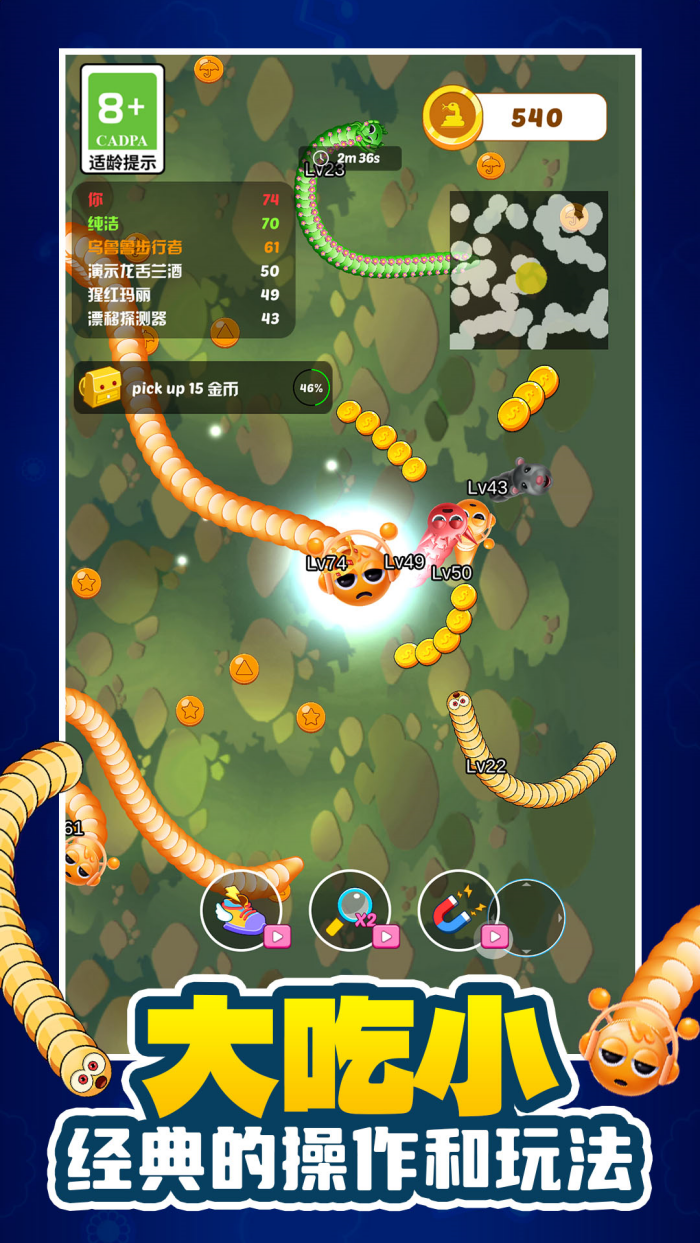 4、翻盘机会多多:体型小可不是什么缺点,小蛇也能通过操作实现逆转,过程既刺激又能带来满满的成就感,每一局都蕴藏着胜出的无限可能。