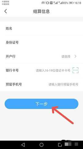 填入银行卡号,预留手机号后点击下一步,即绑定银行卡成功。