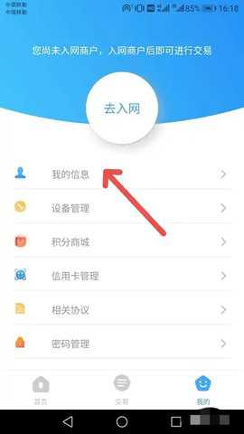 登录pos软件,点击我的,再点击我的信息。