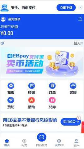 进入EBpay钱包APP:打开EBpay钱包,从首页下方点击【买卖EB】,进入购买出售页面。