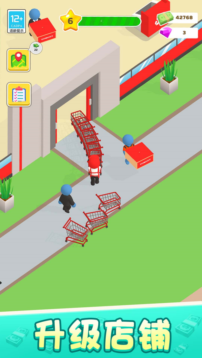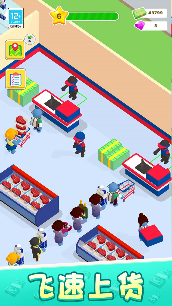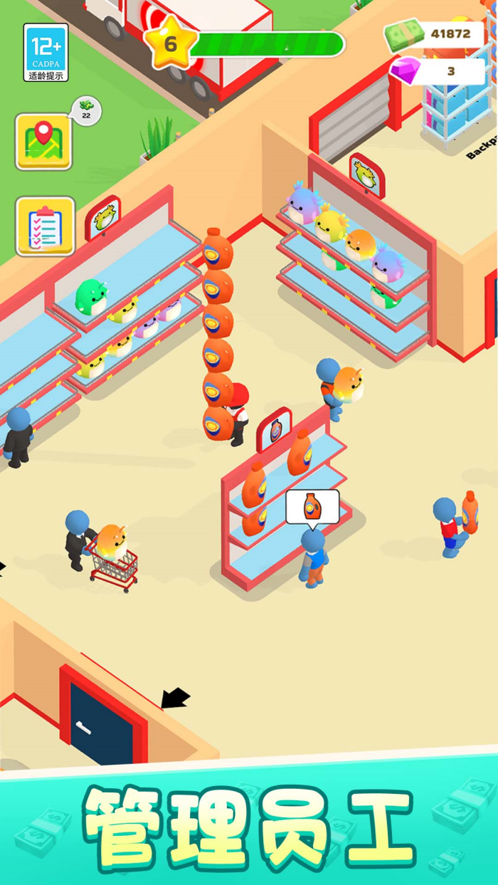 迷你超市是一款模拟经营类游戏。玩家进入游戏后便获得小型便利店,设置货架,布置仓库,售卖商品都需要在这繁忙的经营过程中慢慢学会。