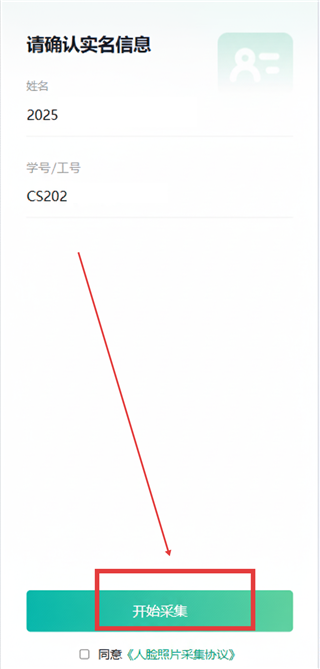 2、 认真阅读《人脸照片采集协议》,点击同意后选择 【开始采集】。