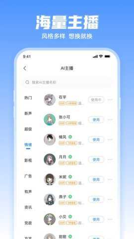 2.支持音量、音调、语速、情绪的调节,随播随停。