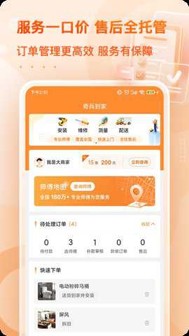 2、奇兵到家是一款商家工具应用,我们提供全天守护的客服服务,师傅全天待命,为您提供快速响应和解决方案。