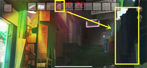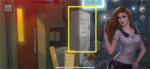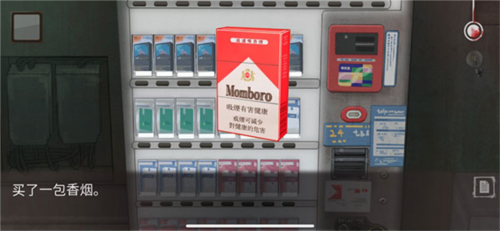 2、然后玩家进入后巷,但是提示香烟贩卖机被酒鬼挡住了,需要酒。