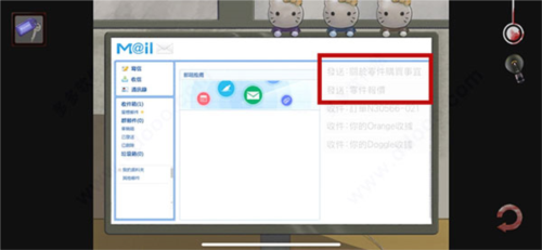 9、玩家需要点击电脑,就能获得提示需要开机密码,而这个开机的密码就是丽芯的生日,即【1116】。顺利打开电脑之后点击【邮箱】,把最上方的两封邮件发送出去即可。