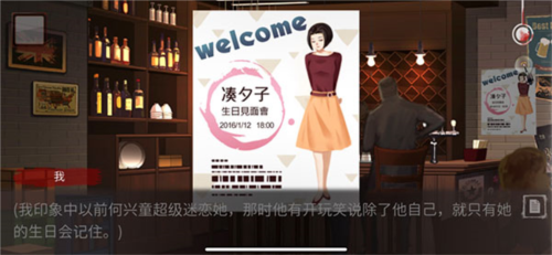6、玩家需要回到酒吧再次进入剧情,然后就会提示【偷看何兴童的手机】,而开机密码就是海报上女明星的生日【0112】