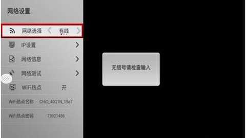 2、选择有线连接或者是WiFi热点连接,将网线插入电视机即可进行有线连接。
