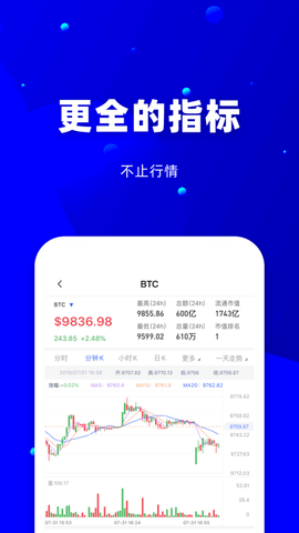 1、币coinAPP支持多个主流数字货币交易所,并且提供了包括K线图、深度图等在内的多种图表展示方式,在呈现市场走势方面非常直观明了。