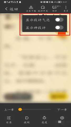 在弹出的菜单中,点击关闭显示段评气泡和显示神段评,使其按钮变成灰色即可。