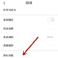 3、在设置页面,点击“隐私设置”。