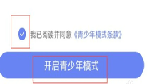 勾选我已阅读并同意协议,然后点击开启青少年模式