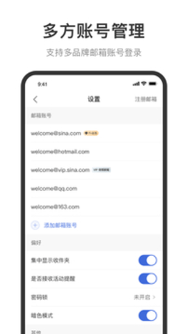 2. 邮箱新浪支持多账号登录,用户可以同时管理多个邮箱账号,方便快捷。