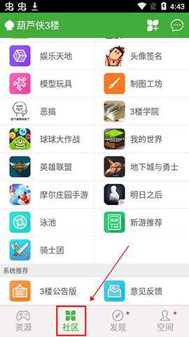 1、先加入软件,点击“社区”;