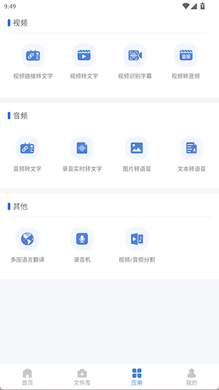 1、首页提供视频、语音转文字等常用功能入口