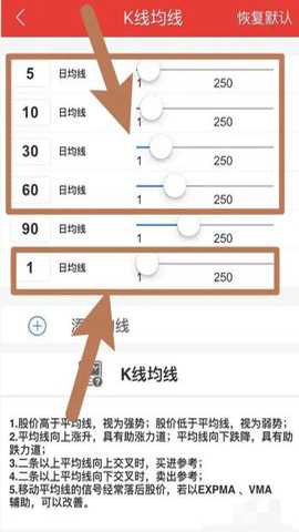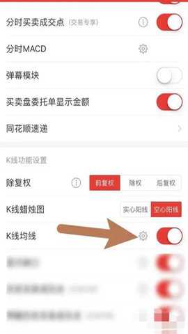 然后在分时k线设置界面点击k线均线右侧的设置;