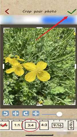在相册中选择好照片后,在照片下方选择照片尺寸,然后点击右上角的对号。