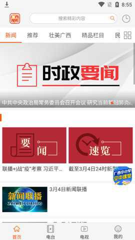 1、“广西视听空中课堂”作为广西广播电视台的手机客户端,包括新闻、广播电视节目直播、雅言普通话教程等多种服务。