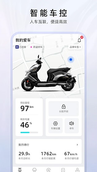 适合城市上班族远程查看车辆状态、提前启动预热,并利用精准定位快速找到停放位置,节省通勤时间。 2、长途骑行规划 骑行爱好者可借助社区分享的路线攻略与实时车辆数据,合理安排充电与休息节点,提升长途出行体验。 3、车辆安全保障 当车辆停放在无人看管区域时,异常移动提醒与实时追踪功能可有效防范盗窃,增强用户安心感。 4、改装技术交流 对车辆性能有更高要求的用户可在社区中获取专业改装建议,与其他极客互动,共同探索个性化升级方案。 5、新车选购决策 计划购入电摩的用户可通过应用详细了解各车型配置、真实用户评价及促销信息,辅助做出合适选择。