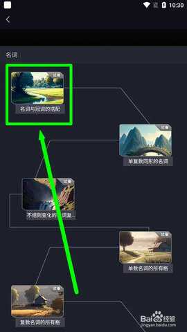 在学习内容页面中,您通常可以看到不同的单元或课程列表,例如基础单词、常用句型、语法等。