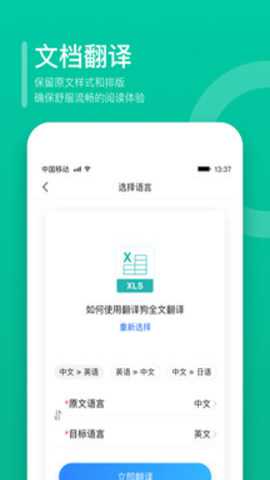 2.在打开APP后,我们点击主界面的“文档翻译”按钮进行翻译。