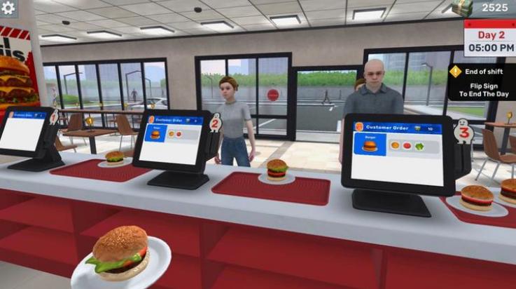 3、自由店铺经营:玩家可自主决定店铺装修风格、菜单定价、员工招聘,全方位掌控汉堡店的运营方向。