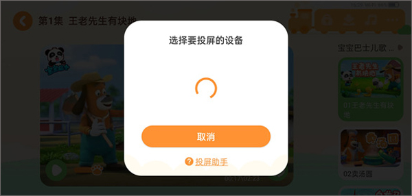 2、接着打开宝宝巴士的视频播放,点击视频右侧的视频投屏功能。
