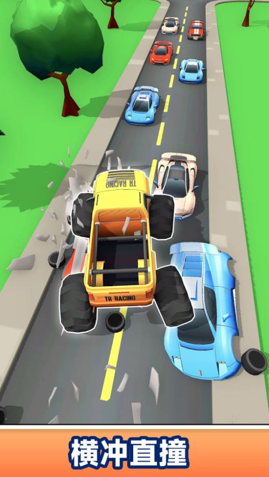 2、需要合理操控,一路上能碾压面前的所有车辆,获取相应分数。