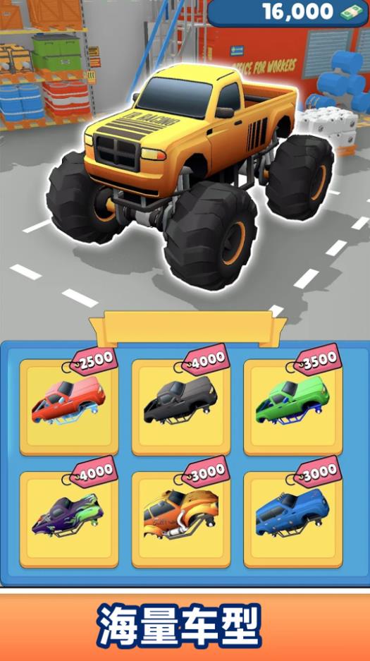 1、赚取金币,全面升级你的爱车,强化引擎、加固防滚架到更换巨型轮胎,每一处改装都直接影响性能。