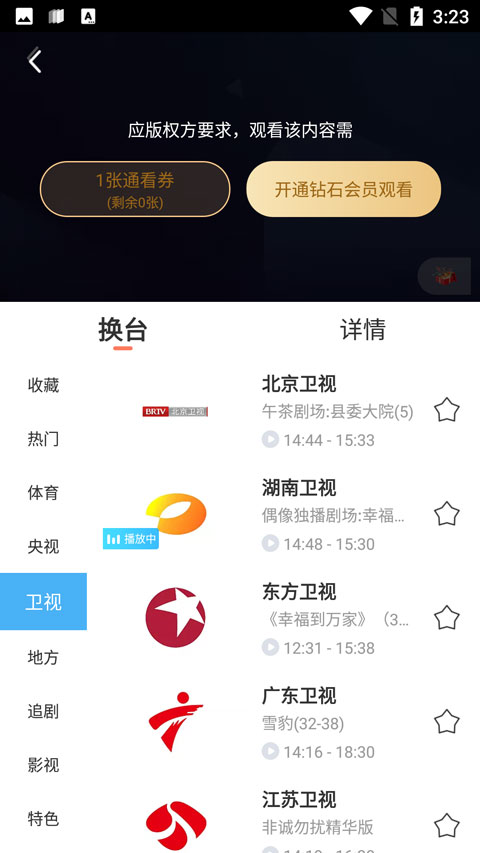 5、有的卫视观看需要会员,大家可以选择观看