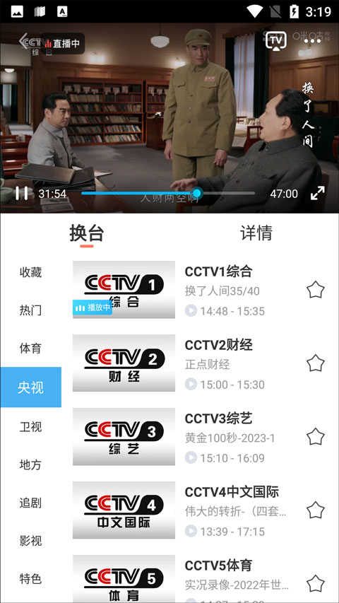 3、在央视中,可以观看央视的众多频道,像CCTV1、CCTV3、CCTV4等等