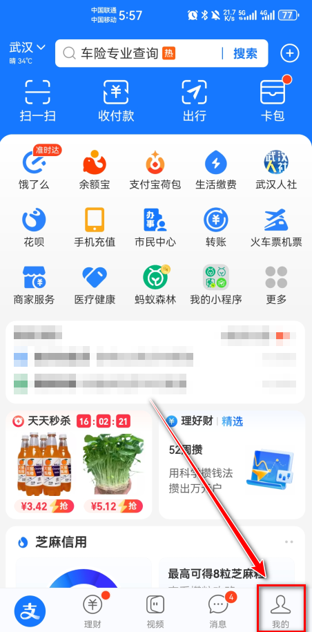 1.打开支付宝,点击右下角我的。