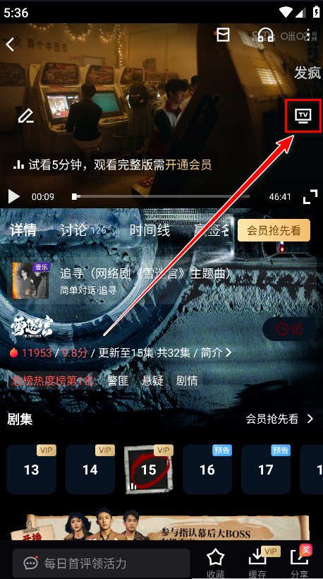 1.确保你的手机和电视连接在同一个WiFi网络下,打开咪咕视频,点击我们想看的电视剧。