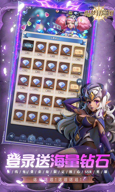 3、【无限钻石】每日可领取大量钻石与代金券,累计十万钻!